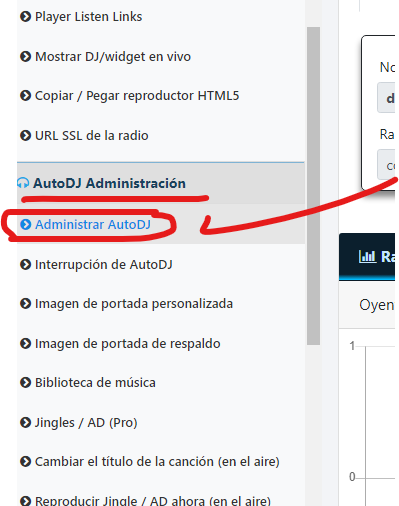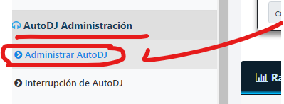 Nos dirigimos en la parte izquierda en la opción AutoDJ Administración.
