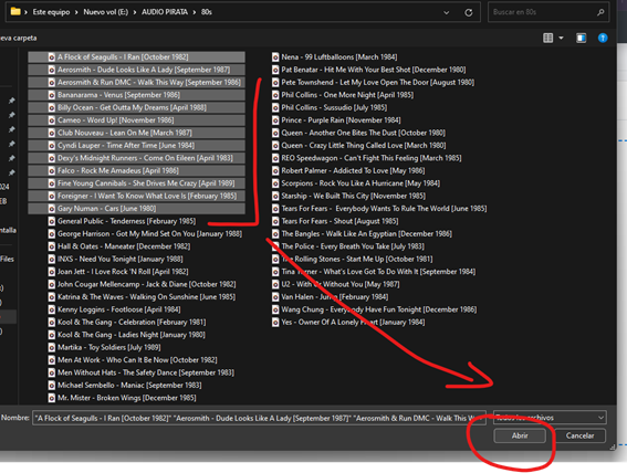 Puede escoger uno por uno el archivo de música o todo un lote de canciones para luego dar clic en Abrir y de esa manera se subirá a la nueve del servicio las canciones que sonar en modo Auto Dj.