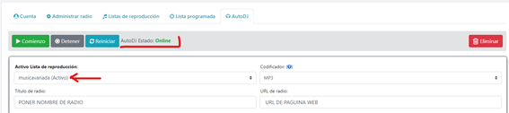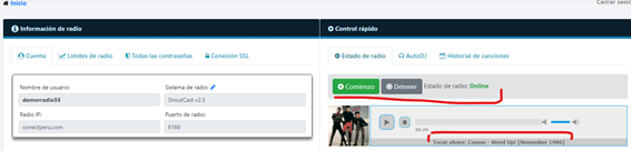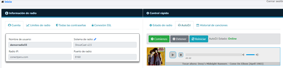Para verificar si ya está funcionando todo a la perfección ir a INICIO y verá y escuchará ya la radio sonando con las canciones que subió al Auto Dj.