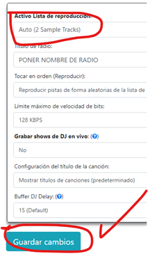 En caso hacer tener varias carpetas de música y desea cambiar la lista por otra, solo realiza el cambio de lista de reproducción y clic en Guardar cambios.